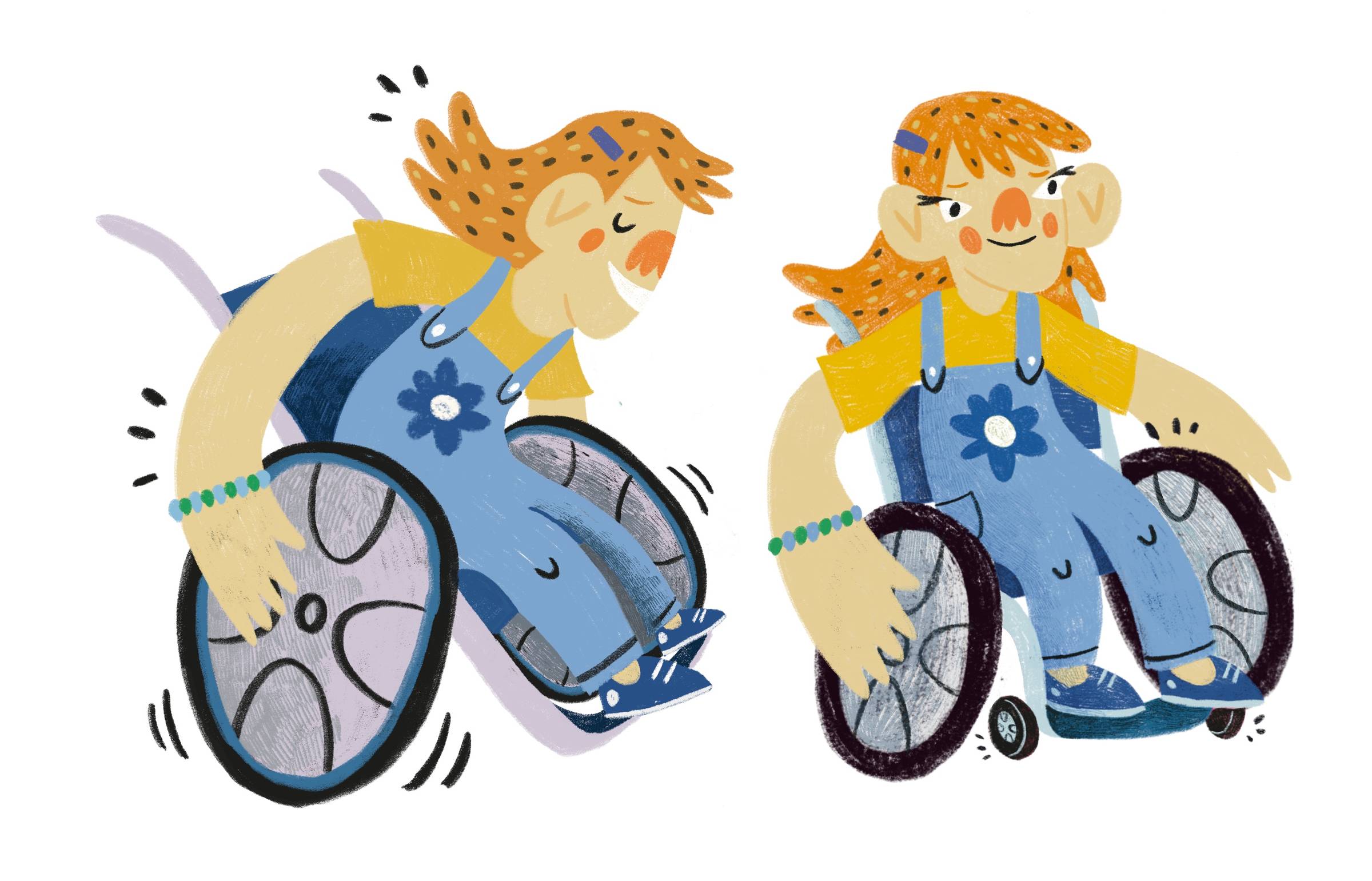 Another challenge was emulating action, especially in the illustrations where Vo is moving her wheelchair. There's a particular scene in the book where she is using her wheelchair to go up a large hill, which took me several rounds and conversations to make sure this was true to how Vo would move in her wheelchair.
